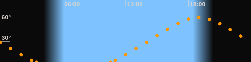 Höchster Stand (Kulmination)18:58 Uhr (h = 64.8°)