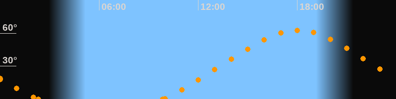 Höchster Stand (Kulmination)18:01 Uhr (h = 62.8°)