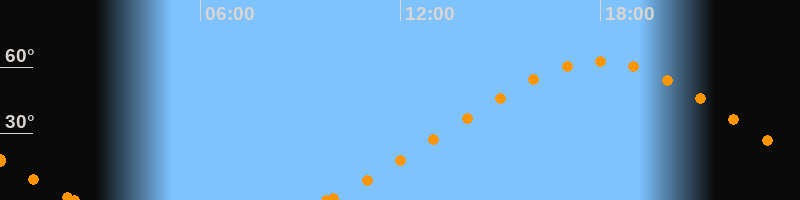Höchster Stand (Kulmination)17:59 Uhr (h = 62.7°)