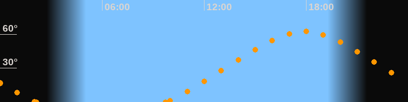 Höchster Stand (Kulmination)17:54 Uhr (h = 62.4°)
