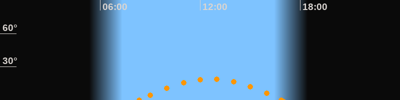 Höchster Stand (Kulmination)12:36 Uhr (h = 19°)
