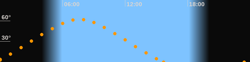 Höchster Stand (Kulmination)07:35 Uhr (h = 61.9°)