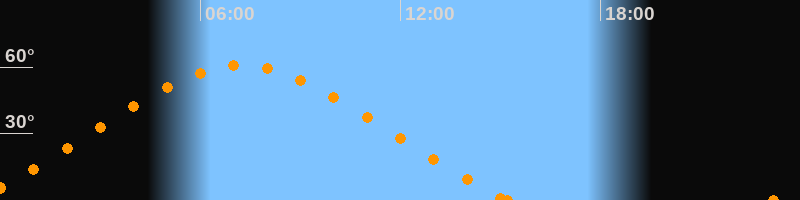 Höchster Stand (Kulmination)07:14 Uhr (h = 60.8°)