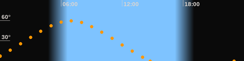 Höchster Stand (Kulmination)06:54 Uhr (h = 59.6°)
