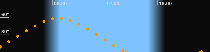 Höchster Stand (Kulmination)06:39 Uhr (h = 58.7°)