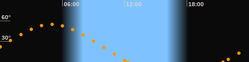 Aufgang21:30 Uhr im Nordosten (αAz = 63.9°)