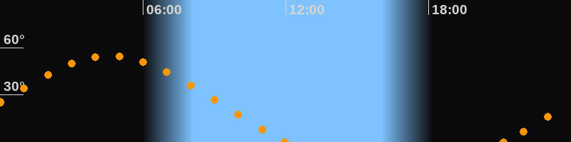 Aufgang21:09 Uhr im Nordosten (αAz = 64.3°)
