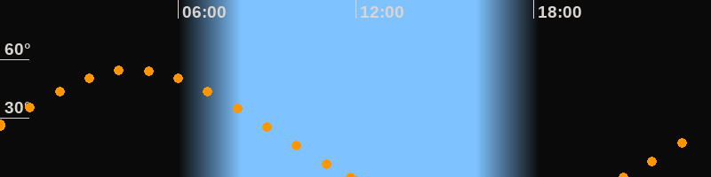 Höchster Stand (Kulmination)04:28 Uhr (h = 54.8°)