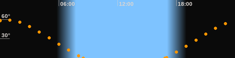 Höchster Stand (Kulmination)00:37 Uhr (h = 59.3°)