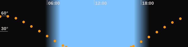 Höchster Stand (Kulmination)00:31 Uhr (h = 59.4°)