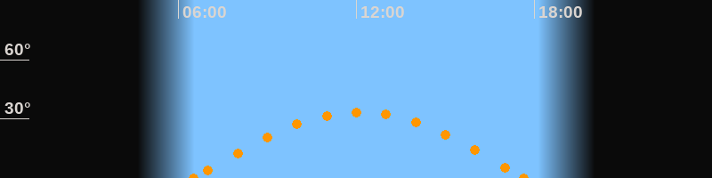 Höchster Stand (Kulmination)12:06 Uhr (h = 33.5°)