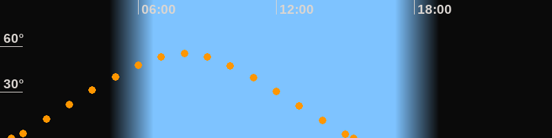 Aufgang00:31 Uhr im Nordosten (αAz = 63.7°)