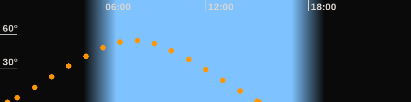 Höchster Stand (Kulmination)07:49 Uhr (h = 54.3°)