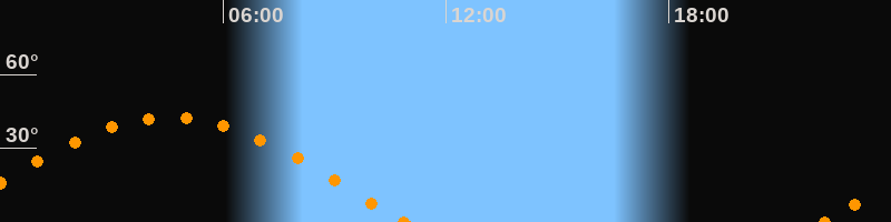 Höchster Stand (Kulmination)04:34 Uhr (h = 42.5°)