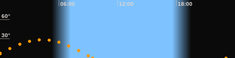Höchster Stand (Kulmination)04:18 Uhr (h = 28.5°)