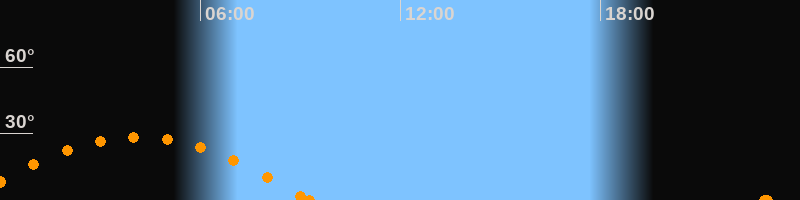 Höchster Stand (Kulmination)04:08 Uhr (h = 28.3°)