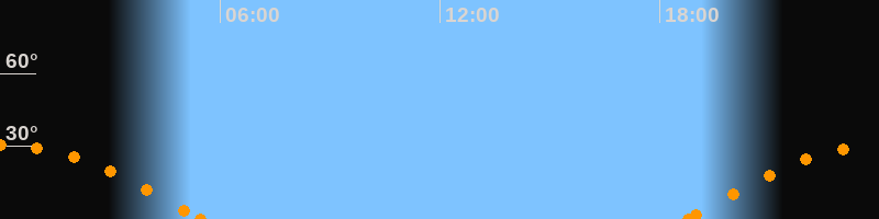 Höchster Stand (Kulmination)00:04 Uhr (h = 30.5°)