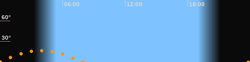 Aufgang23:51 Uhr im Südosten (αAz = 126.8°)