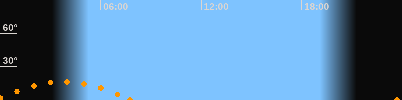 Aufgang23:42 Uhr im Südosten (αAz = 127°)