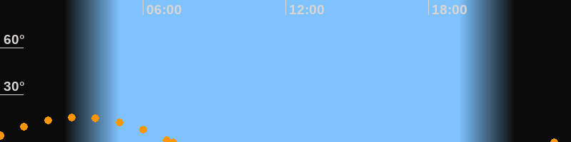 Aufgang23:18 Uhr im Südosten (αAz = 127.7°)