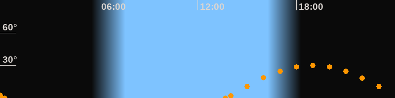 Höchster Stand (Kulmination)19:00 Uhr (h = 30.4°)