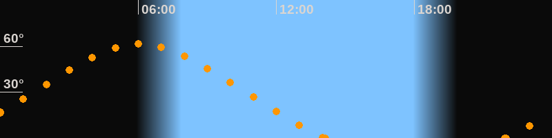 Höchster Stand (Kulmination)06:03 Uhr (h = 61.7°)