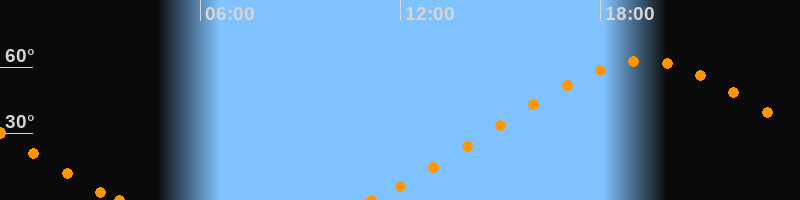 Höchster Stand (Kulmination)19:18 Uhr (h = 62.7°)