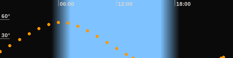 Höchster Stand (Kulmination)06:16 Uhr (h = 55.5°)