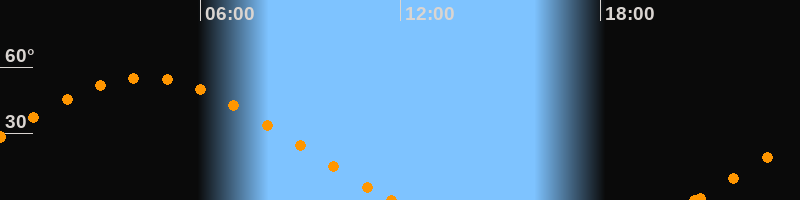 Höchster Stand (Kulmination)04:18 Uhr (h = 55.3°)