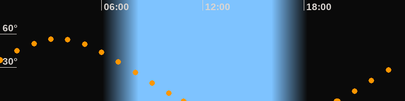 Höchster Stand (Kulmination)03:25 Uhr (h = 55.5°)