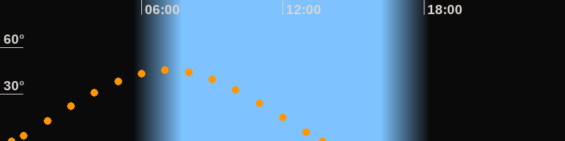 Höchster Stand (Kulmination)07:07 Uhr (h = 45.5°)