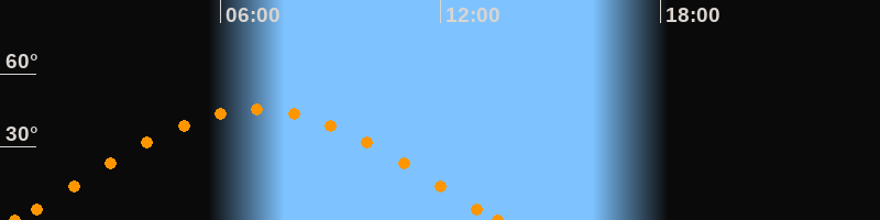 Höchster Stand (Kulmination)07:00 Uhr (h = 45.5°)
