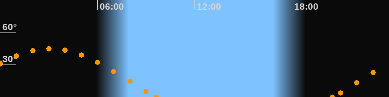Höchster Stand (Kulmination)03:05 Uhr (h = 45.2°)