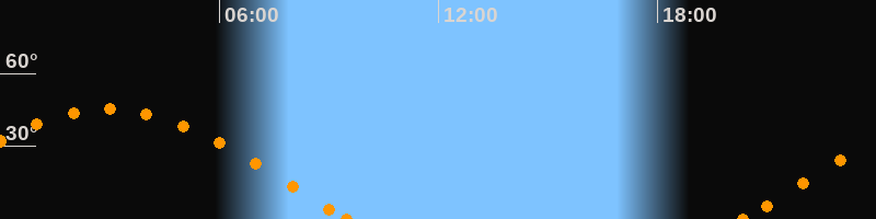 Höchster Stand (Kulmination)02:57 Uhr (h = 45.3°)