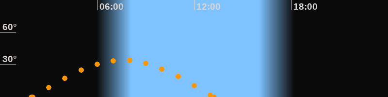 Höchster Stand (Kulmination)07:35 Uhr (h = 34.4°)
