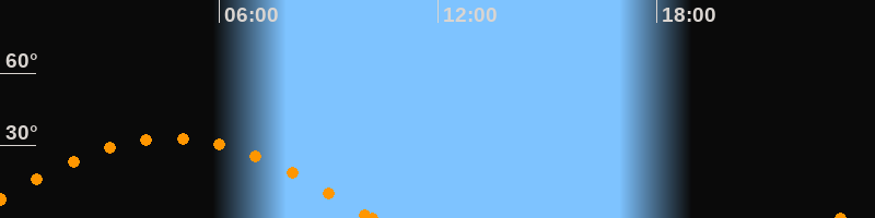 Höchster Stand (Kulmination)04:40 Uhr (h = 33.2°)