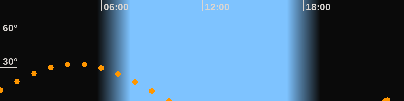 Höchster Stand (Kulmination)04:28 Uhr (h = 33.2°)