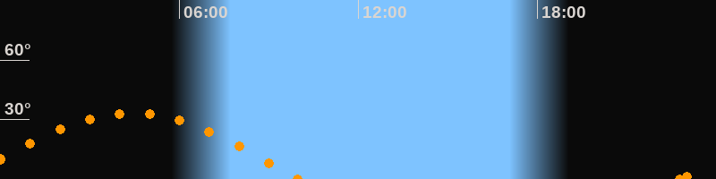 Höchster Stand (Kulmination)04:24 Uhr (h = 33.2°)