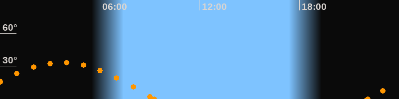 Höchster Stand (Kulmination)03:43 Uhr (h = 33.4°)