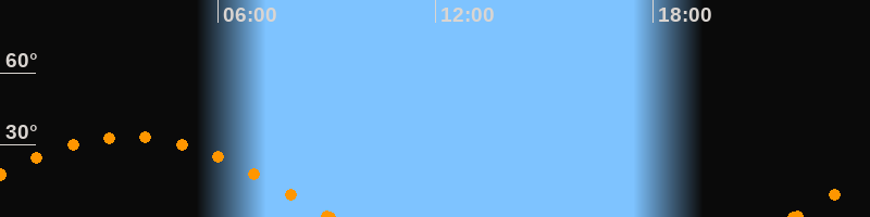 Höchster Stand (Kulmination)03:31 Uhr (h = 33.4°)