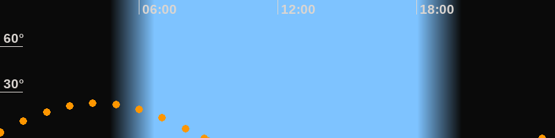 Aufgang23:26 Uhr im Südosten (αAz = 115.4°)