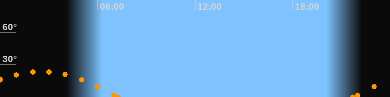 Höchster Stand (Kulmination)02:30 Uhr (h = 23.8°)
