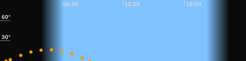 Untergang08:44 Uhr im Südwesten (αAz = 234°)