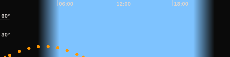 Untergang08:40 Uhr im Südwesten (αAz = 234°)
