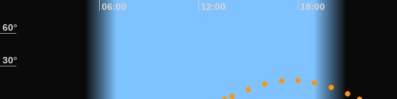 Aufgang13:34 Uhr im Südosten (αAz = 125.6°)