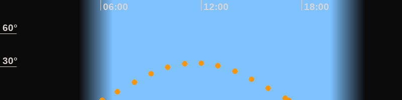 Höchster Stand (Kulmination)11:40 Uhr (h = 33.6°)