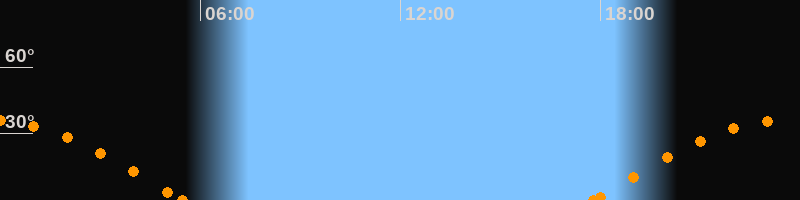 Höchster Stand (Kulmination)23:35 Uhr (h = 36.2°)
