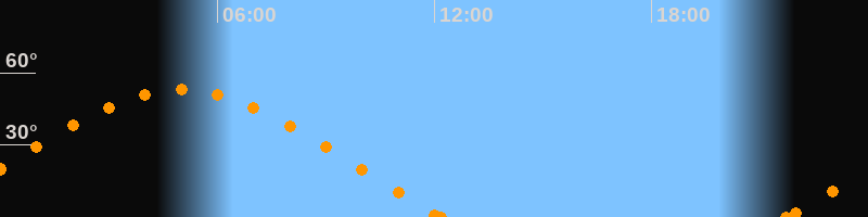 Höchster Stand (Kulmination)04:59 Uhr (h = 52.9°)