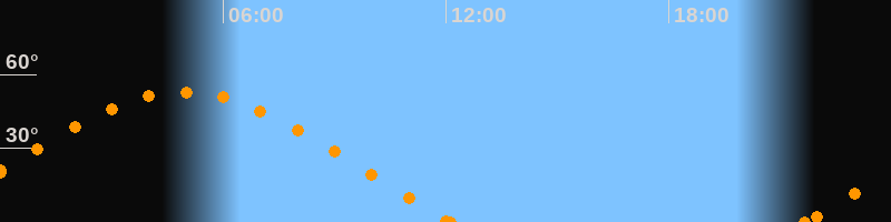 Höchster Stand (Kulmination)04:55 Uhr (h = 52.9°)