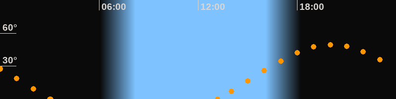 Höchster Stand (Kulmination)20:05 Uhr (h = 49.7°)